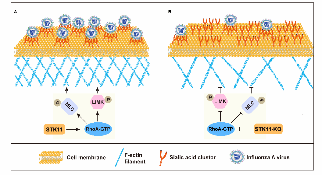 STK11通过RhoA信号通路调控唾液酸簇空间组织促进流感病毒吸附
