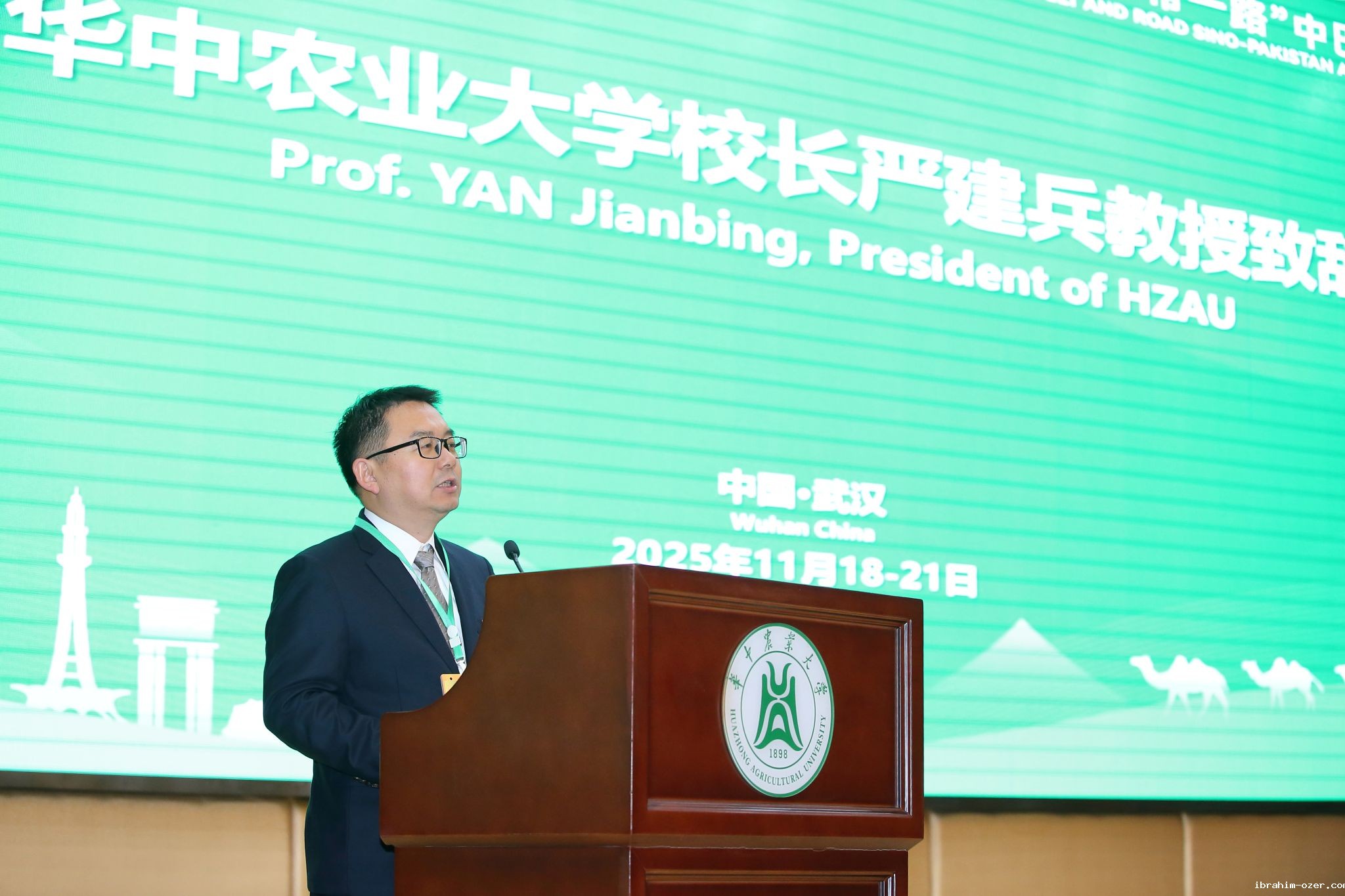南湖新闻网讯(通讯员 郑欢 宋兰香)11月19日,以“绿色高效农业与可持续发展”为主题的第五届“一带一路”中巴农业论坛在我校国际学术交流中心开幕。校长严建兵、巴基斯坦驻华大使Khalil Hashmi(卡里尔·哈什米)、湖北省人民政府外事办公室主任章笑梅、武汉市科技创新局二级巡视员王振旭等出席论坛。来自费萨拉巴德政府学院大学,巴基斯坦国立科技大学,巴基斯坦国家农业研究中心,拉斯贝拉农业、水利与海洋科学大学,阿尤布农业研究所以及塔里木大学等国内外学者共计100余人参会。论坛开幕式由我校国际合作与交流部部长曾红霞主持。