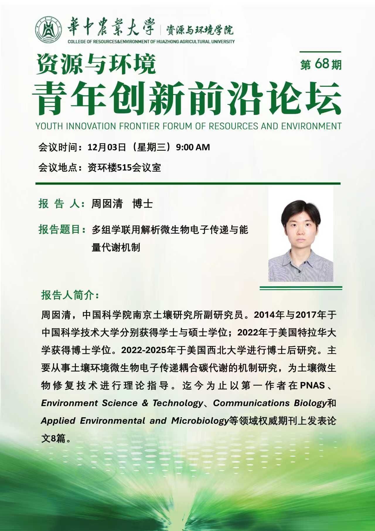 【青年创新前沿论坛】第68期:多组学联用解析微生物电子传递与能量代谢机制