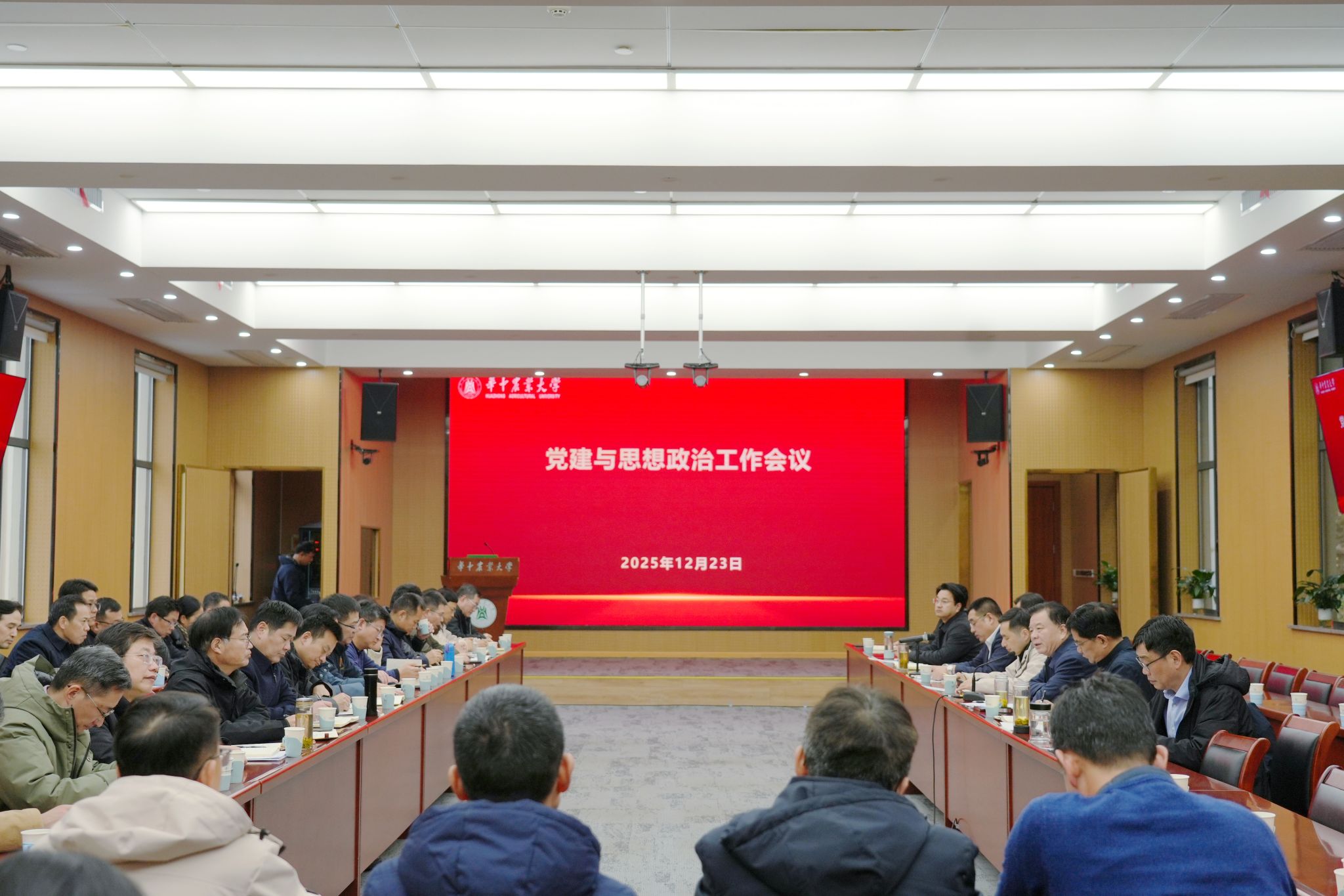 南湖新闻网讯(记者 吴晗)12月23日下午,学校在教育培训学院六号会议室召开12月党建与思想政治工作会议。校党委书记姚江林主持会议,校党委副书记王从严、李向东,校党委副书记、纪委书记赵凯,副校长郭刚奇、杨少波、李大鹏,各二级党组织书记,机关党委所属党总支、党支部书记,党务部门、校工会、校团委等单位主要负责同志等参加会议。