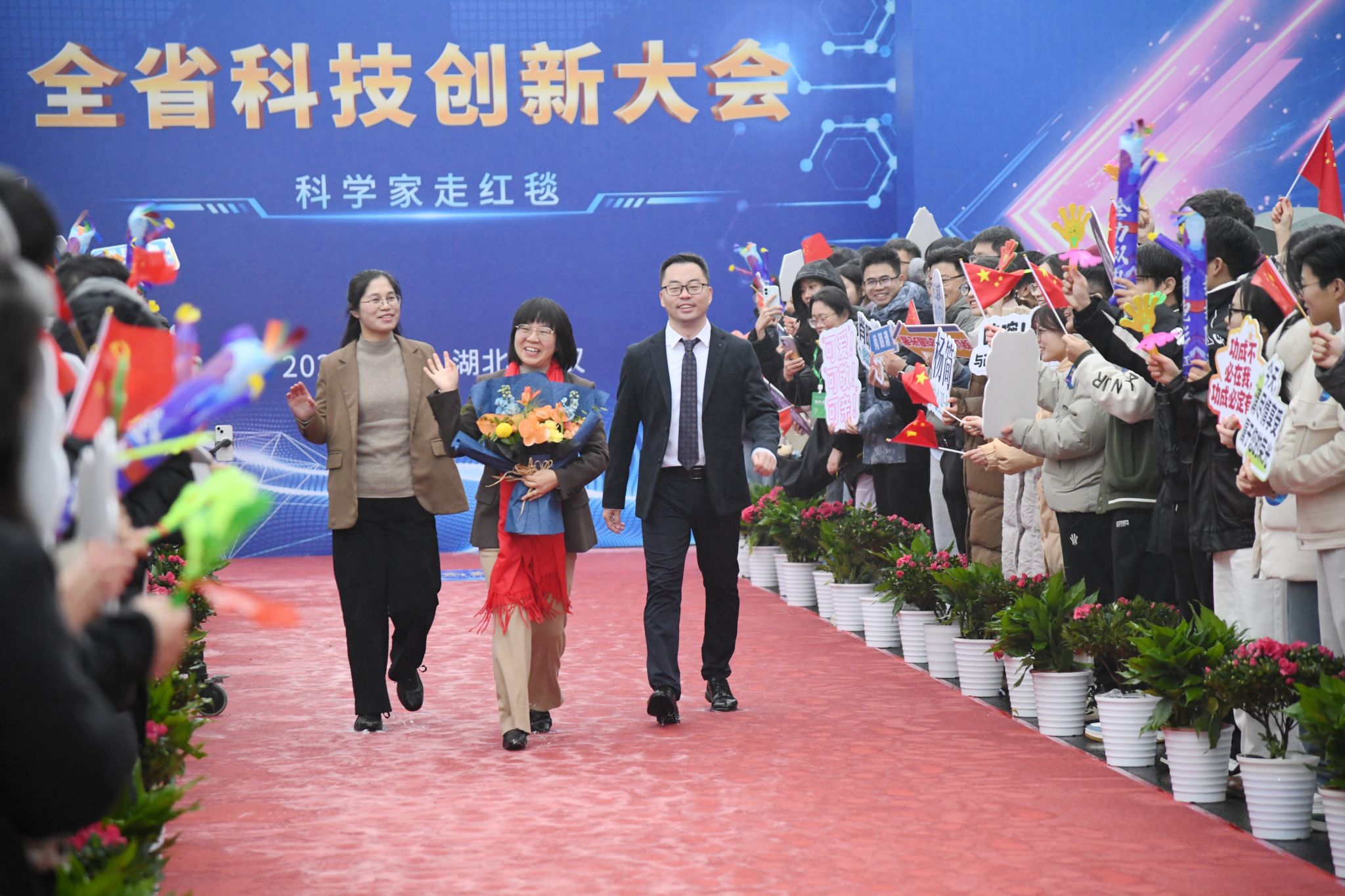 大会开始前,高泽霞教授与湖北省其他11位科学家一道,代表全省科技工作者依次走过红毯铺设的“星光大道”。高泽霞教授面对镜头表示,将继续勇攀科技高峰,在湖北这片科技创新的沃土,把科研成果转化为实实在在的产品竞争力,用扎实的创新回应产业需求,让中国水产种业走向自立自强,为湖北加快建成中部地区崛起的重要战略支点提供科技工作者应有的贡献。