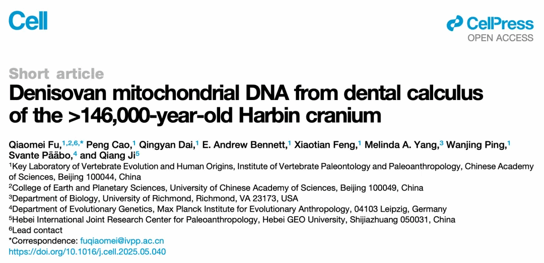 2025年6月,中国科学院古脊椎动物与古人类研究所付巧妹团队与河北地质大学季强团队及古DNA技术先驱、2022年诺贝尔生理学或医学奖得主Svante Pääbo教授合作,在Cell发表论文,通过古DNA技术为“龙人”的群体归属以及丹尼索瓦人的较完整形态提供了关键线索。