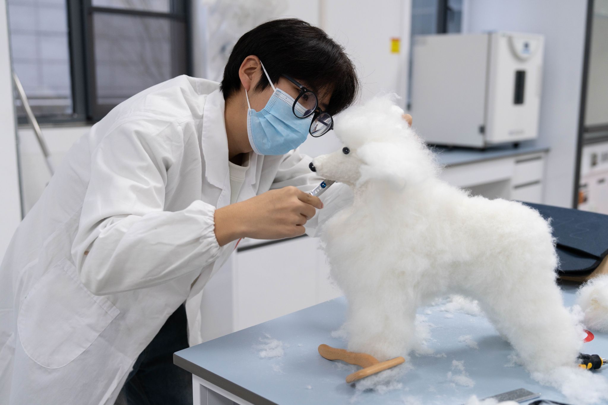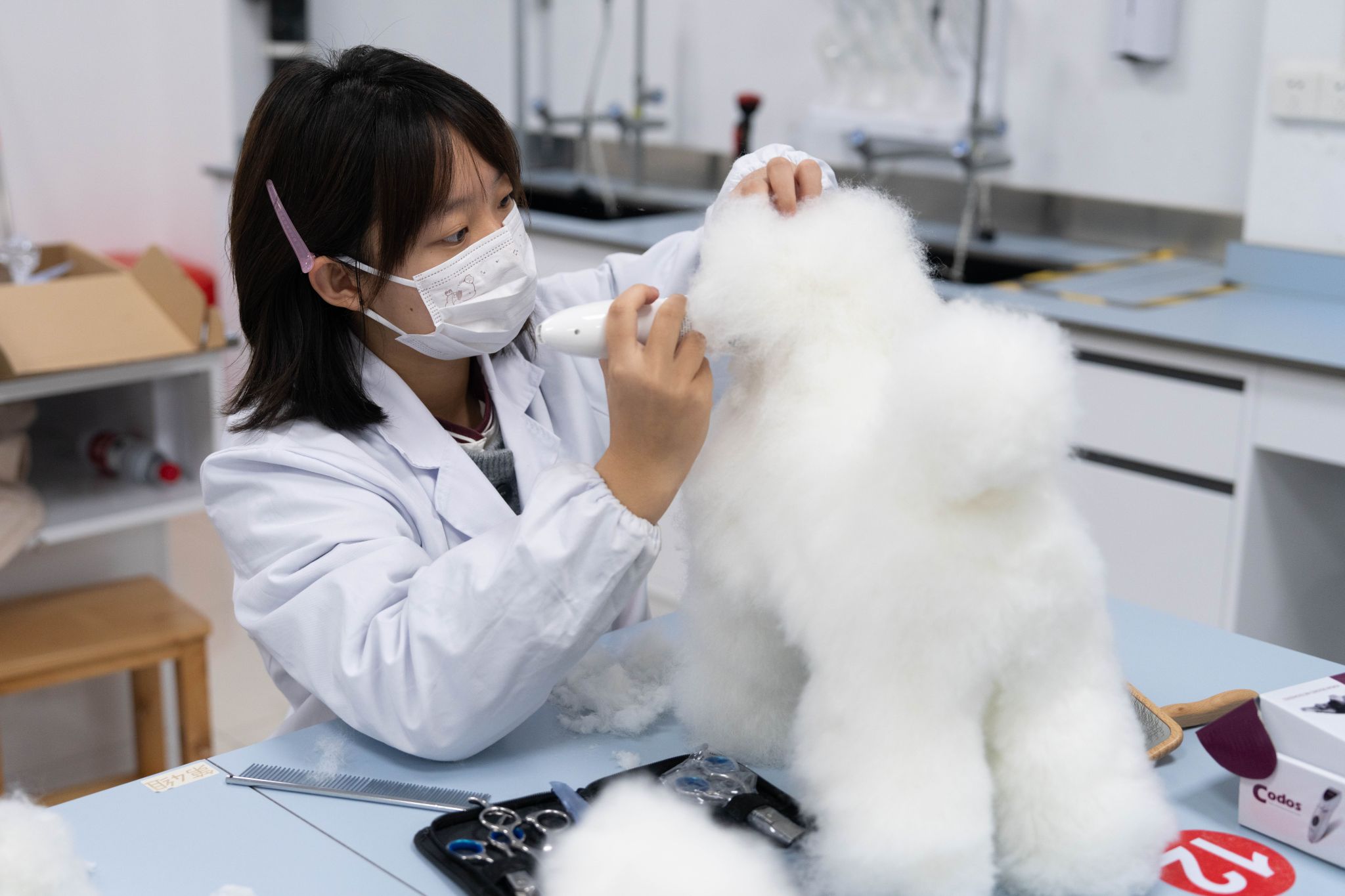 修剪毛发(学通社记者 夏子豪 摄)