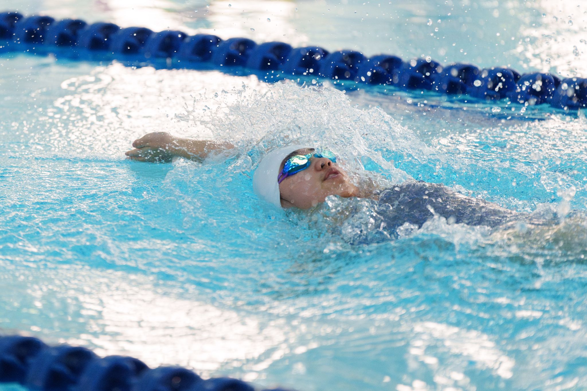 女子组50米仰泳决赛杨妍姿(学通社记者 韩鑫垚 摄)