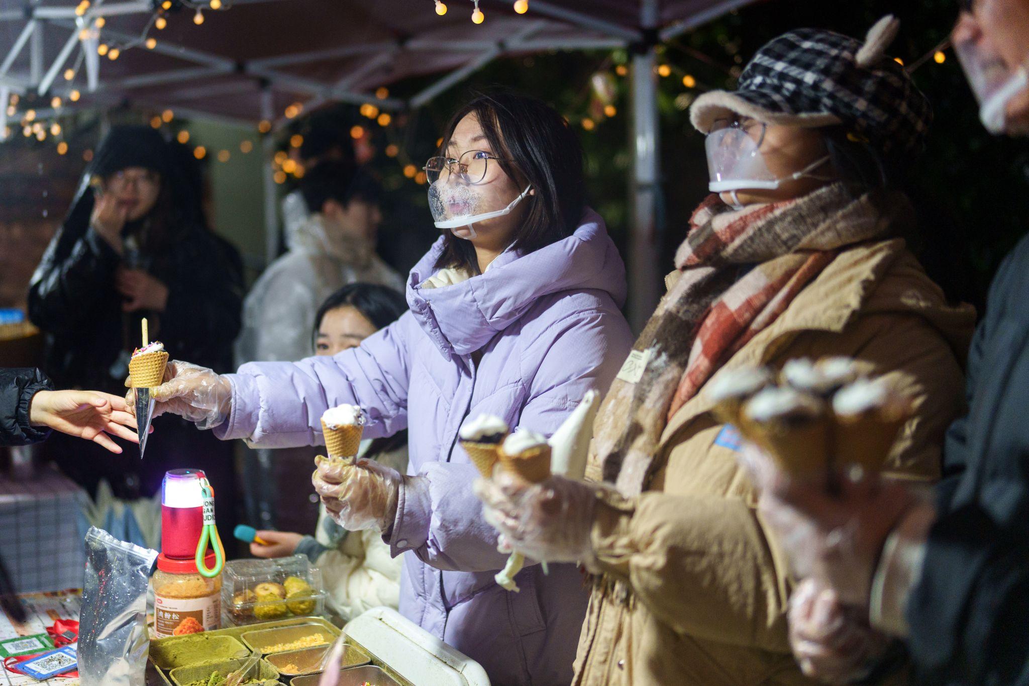 “同学,尝尝我们的黑米热奶宝吧!用的是咱们学校自己培育的‘华墨香’黑米!”12月31日晚6点多,西体育馆旁,王程洋和同伴的热情招呼让越来越多的人聚集在“黑米不黑心3.0热奶宝”摊位前。金黄色的蛋筒里盛满乌黑油亮的黑米,挤上雪白的奶油或酸奶,再撒上肉松、抹茶粉或新鲜水果等各种辅料,这款改良版热奶宝很快成了狮山欢乐节的明星产品。