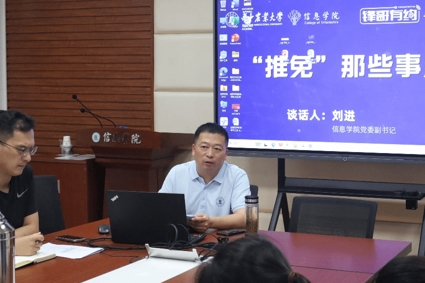 图 9 信息学院党委副书记走进“锋哥有约”与学生共话推免事宜(王亦姮 摄)